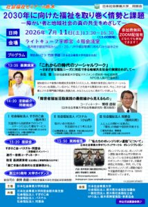 本年度のテーマは「災害ソーシャルワークの未来」で基調講演とシンポジウムを開催します。詳細は、母校ホームページに更新されます。参加費無料。スキルアップの機会として活用ください。(定員有:先着順)
